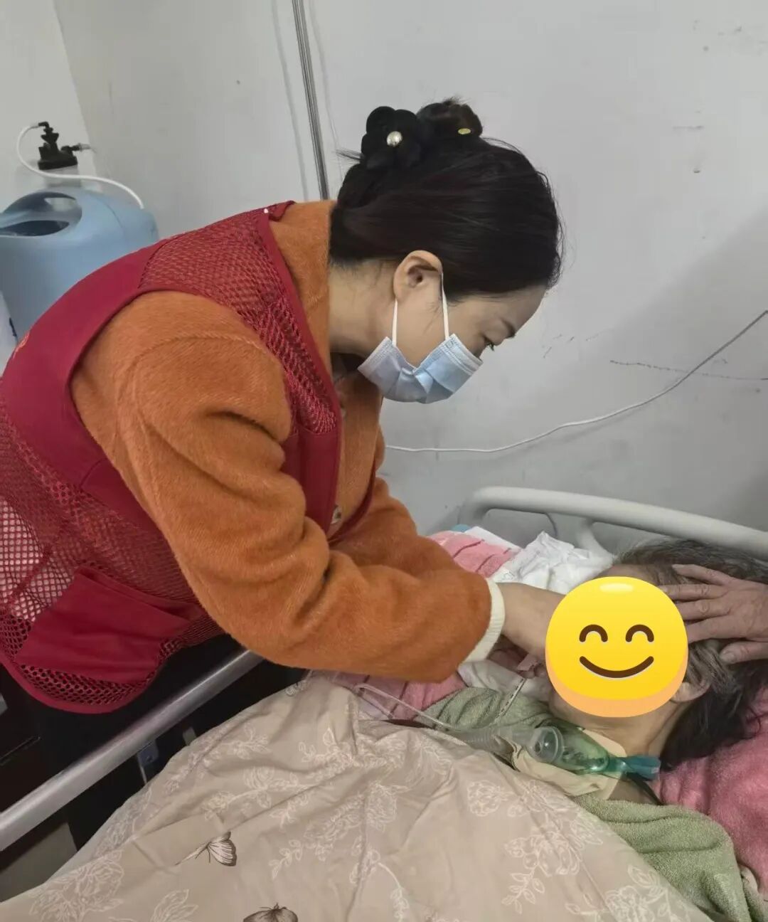 三个月前,彭阿姨中风了。经孝安中心医院抢救,现已脱离生命危险。然而,他却留下了四肢瘫痪、说话困难等后果。当他出院时,他仍然留有胃管和血管,并进行了气管切开术。缺乏专业护理技能的一家人,回国后不久就遇到了困难。正在回家。各种专业需求让我不知所措,包括气道消毒、鼻饲和康复训练。