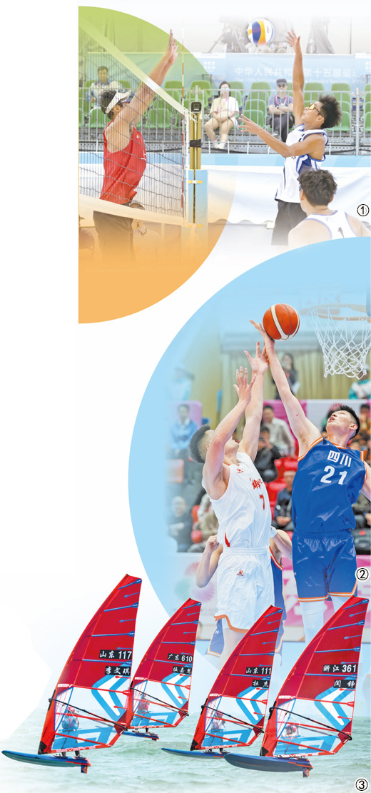 图片①:香港维多利亚公园,第十五届全国锦标赛男子沙滩排球队比赛正在紧锣密鼓地进行。供图:卢丙辉(新华社发) 图2:参加第十五届全国锦标赛成年男篮比赛的球员。新华社 李波 摄 图3:广东省汕尾市第十五届全国帆船比赛女子水翼帆板比赛中,运动员们在比赛。新华社记者吉美多吉摄。澳门赛区志愿者深入当地社区开展活动。澳门特别行政区政府新闻局供图 第十五届全国代表大会将于11月9日开幕。这项由粤港澳三地联合举办的体育赛事,掀开了全国体育赛事历史新一页,激发了区域合作与活力。发展。本期我们推出专题报道,通过赛事组织者、运动员和竞赛志愿者的故事,呈现全运会备战成果。让我们一起利用好运吧。 ——《人民日报》编委会(2025年11月7日第11页)相关报道:第十五届全国艺术体操比赛备战队——用心谋划高水平比赛香港击剑队——期盼乡村比赛再创佳绩志愿者孙梦月——微笑展现澳门风采大湾区激情澎湃,散发新时代活力