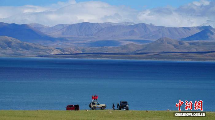 这张照片显示了9月3日参加活动“ Ali在Sky Cloud Driving”活动的游客,访问了Mapan Yongcuo湖的海岸。 Yan Zhiguo的照片