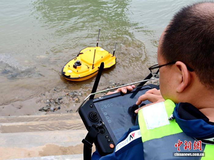 数据图像显示,青海水文人员运营着一艘无人船。青海水资源提供的照片