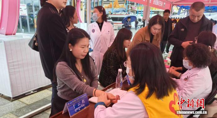 这张照片显示了一个广东话和藏人的医疗专业人员,他们提供免费的医疗咨询。 (照片由您联合会的广东省委员会提供NG共产党)